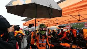 The race didn’t start under the clearest skies. Rain swept across the legendary circuit, delaying the race and throwing team strategies into disarray right from the get-go. When the lights finally went out, it was Lando Norris who had pole position, but it didn’t last long. As the cars surged forward under slippery conditions, Oscar Piastri pulled off a decisive move to snatch the lead from his McLaren teammate.