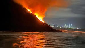 A dramatic scene unfolded last night on the Gold Coast, when a fire broke out at the popular Burleigh Headland National Park. Just after 9:30pm, emergency crews were called to the area following reports of a large blaze. The fire lit up the night sky, drawing the attention of worried locals who gathered nearby as firefighters worked to contain the flames.