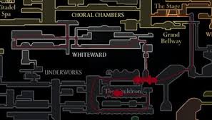 So, here’s how it works. The Clawline Grappling Hook itself is tucked away in a place called The Cauldron, which sits deep within the Underworks. But before you even think about getting there, you’ll first need a White Key. This key is stashed in the Songclave subzone, at the far top-right of the Choral Chambers, right outside the First Shrine. Once that key is in your possession, the next destination is the lower-left tower of the Choral Chambers. There’s a locked door marked with a crystalline, caduceus-like symbol, and the White Key is what allows you to pass.